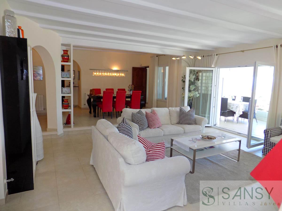 VILLA EN ALICANTE,TEULADA-MORAIRAVilla 4 dormitorios, 4 baños, 1 garajes, Buen estado, en Teulada-Moraira, Alicante VISTAS AL MAR A MENOS DE 1KM DEL CAMPO DE GOLF IFACH ORIENTACION SUR VILLA CON CARACTER Bonita Villa a la venta con vistas al mar, en una ubicación excelente en la Urbanización San Jaime, Moraira, a 2km (5 min en coche) de la Cala Landragó y 3km (7 min en coche) de la playa de Lampolla, del puerto deportivo y el centro de Moraira. Esta casa de orientación Sur, esta construida en dos plantas y fue totalmente reformada en el año 2006. Ofrece el retiro perfecto ya sea para pasar los meses de invierno o simplemente para disfrutar de las vacaciones en el mediterráneo. La casa cuenta en la planta principal con recibidor desde donde se baja a la planta baja, aseo de invitados, amplio salón comedor con chimenea, salida a la terraza acristalada orientada al Sur con escaleras que llevan a la zona de piscina, cocina equipada con salida al jardín, tres dormitorios dobles, dos baños completos y dormitorio principal con sala de estar. En la planta baja cuenta con salón comedor muy amplio con pequeña cocina abierta y salida a la zona de piscina, baño completo con sauna, ducha y jacuzzi, lavadero con salida al jardín, ducha para la zona de piscina y un trastero. En el sotano cuenta con un garaje doble. Las zonas exteriores con sus encantadoras terrazas, piscina de 12m. x 5,5m., zona chill out y su rico paisajismo con vegetación mediterránea. La vivienda incluye calefacción por radiadores de gas y aire acondiconado en toda la casa. |