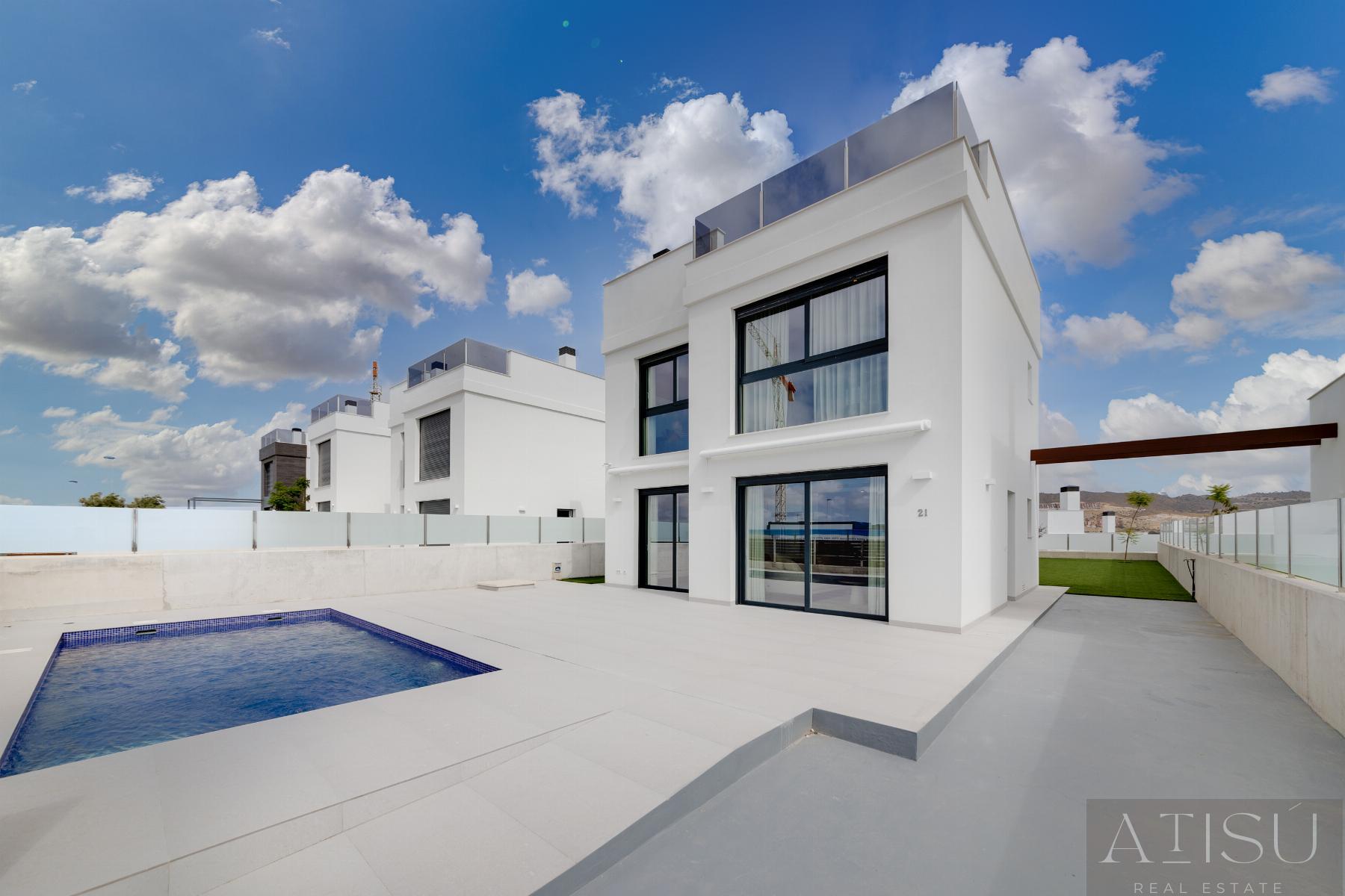 VILLA INDEPENDIENTE EN ALICANTE,MUTXAMELVilla Independiente, 3 dormitorios, 3 baños, 2 garajes, Nuevo, en Mutxamel, Alicante ÚLTIMAS VILLAS DE OBRA NUEVA CON PISCINA PRIVADA A 5 MINUTOS DEL MAR EN El CampelloExclusiva promoción de viviendas independientes situadas en una nueva zona residencial en expansión, a escasos minutos del puerto y las playas de El Campello. Villas diseñadas con un concepto contemporáneo, altas calidades y equipamiento completo, ideales tanto como residencia permanente como inversión patrimonial.DISTRIBUCIÓN:Las viviendas se distribuyen en dos plantas más solárium privado, ubicadas sobre amplias parcelas de aproximadamente 550 m².Disponen de luminoso salón-comedor con acceso directo a la terraza y zona de piscina, cocina moderna totalmente equipada con electrodomésticos integrados, tres dormitorios dobles, de los cuales dos son en suite, y uno de ellos dispone además de una terraza privada con orientación sur, y baños completos de diseño actual.El solárium ofrece vistas abiertas a la montaña y al entorno natural, creando un espacio ideal para relax y ocio privado.Cada villa incluye zona de aparcamiento dentro de la parcela.CARACTERÍSTICAS:Las viviendas se entregan completamente equipadas y listas para entrar a vivir, incluyendo:- Sistema de aerotermia de alta eficiencia energética para agua caliente sanitaria- Aire acondicionado completo instalado por conductos- Sistema de domótica- Ventilación mecánica- Suelo radiante en baños- Iluminación LED interior y exterior- Carpintería y acabados de alta calidad- Baños con sanitarios suspendidos, mamparas de cristal y mobiliario integrado- Cocina equipada con frigorífico, lavadora, lavavajillas, horno y microondas- Preinstalación para placas fotovoltaicas- Videoportero- Fibra óptica y telecomunicacionesCada vivienda dispone de espacios exteriores privados que incluyen:- Piscina privada iluminada- Terraza con pavimento porcelánico antideslizante- Solárium privado- Zona ajardinada- Parking privado dentro de la parcela con puerta motorizadaZONA:A 1 km de Bonalba GolfA 6 km de Playa de San JuanA 7 km de Playa de MuchavistaA 8 km del puerto y centro de El CampelloA 12 km del centro de AlicanteA 5 km de la estación TRAM más cercana con conexión directa a Alicante y la costaA 25 km del Aeropuerto de Alicante-Elche |