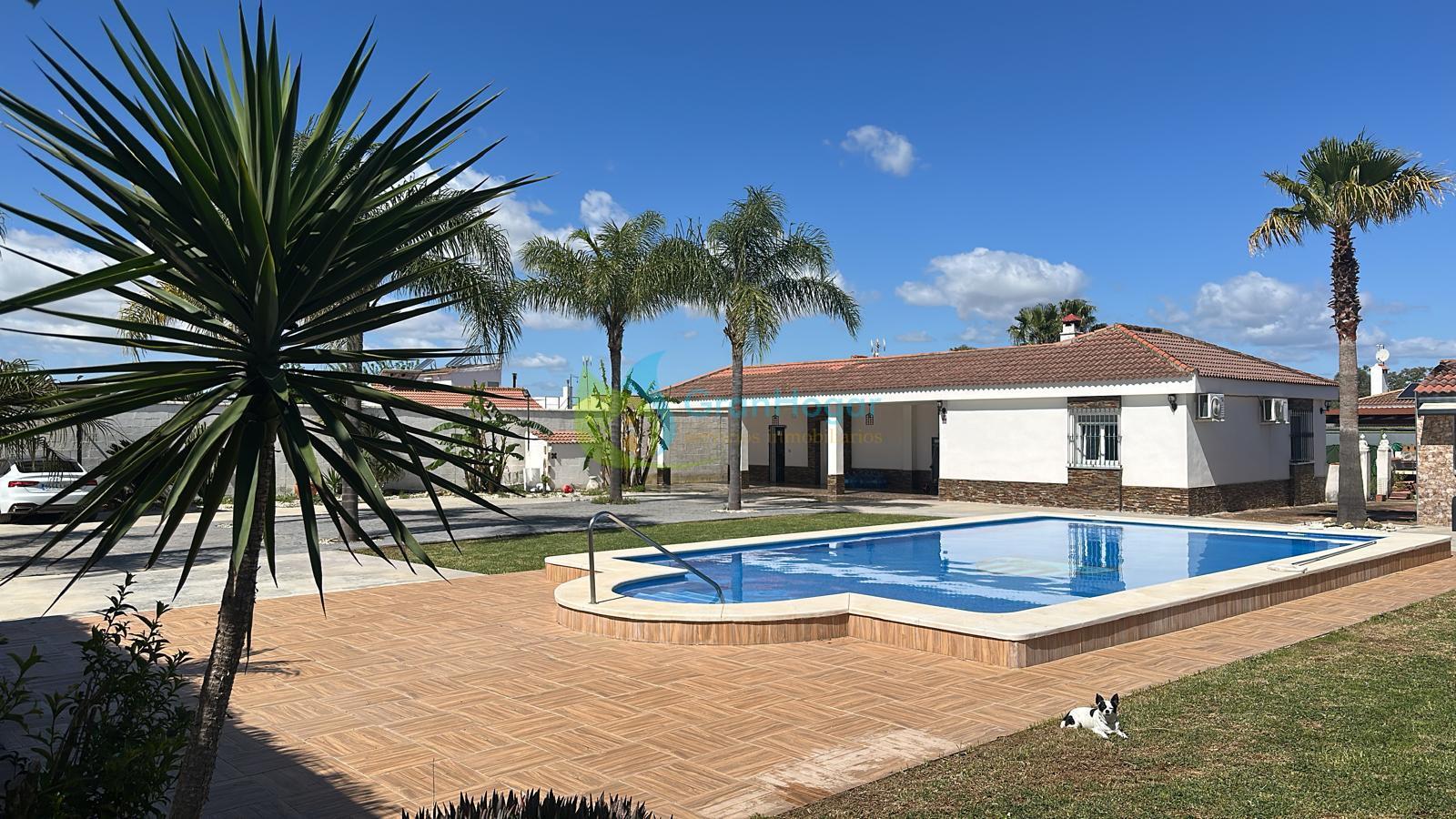 Chalet 5 dormitorios, 3 baños, 1 garajes, Buen estado, en Carmona, Sevilla ESPECTACULAR CHALET EN URBANIZACIÓN CERRADA LOS NARANJOS CARMONA (SEVILLA) Se vende magnífico chalet en parcela de 1.524 m², con vivienda principal y apartamento independiente dentro de la misma parcela, además de gran piscina. Ubicado en la exclusiva Urbanización cerrada Los Naranjos (Carmona, Sevilla), a tan solo 10 minutos en coche de Sevilla, combinando tranquilidad y excelente.. conexión con la ciudad. Vivienda principal:Amplio porche delantero que da acceso a un gran salón con chimenea, perfecto para disfrutar en familia. Gran cocina amueblada con electrodomésticos y posibilidad de instalar chimenea adicional.Dispone de 3 magníficas habitaciones y 2 baños completos. Apartamento independiente (dentro de la parcela):Construcción ideal para invitados, familiares o incluso como espacio independiente. Cuenta con porche delantero, salón, 2 amplias habitaciones, cocina y baño completo. Zona exterior y extras:Parcela de 1.524 m²Más de 350 m² construidosImpresionante piscina de 10x6 metros, alicatada y con iluminaciónCasetilla depuradoraPozo propio con cuartilloCuartillo de herramientasUna propiedad con múltiples posibilidades: vivienda habitual, segunda residencia o ideal para familias que necesiten dos espacios independientes en la misma finca, disfrutando de privacidad y amplitud a pocos minutos de Sevilla. ¡¡NO SE LO PIENSE, PÓNGASE EN CONTACTO Y VISÍTELO SIN COMPROMISO!!Si necesita ayuda con la financiación, no dude en consultarnos.Honorarios, impuestos y otros gastos derivados de la compraventa (Registro de la Propiedad, Notaría, gestoría y posible financiación) NO incluidos en el precio. Leer mas >>